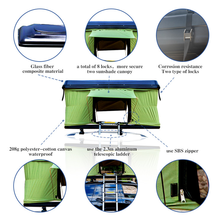 เต็นท์บนหลังคาทั้งหมดเข้ากับหลังคาของรถยนต์ส่วนใหญ่ และสามารถถอดและเก็บได้